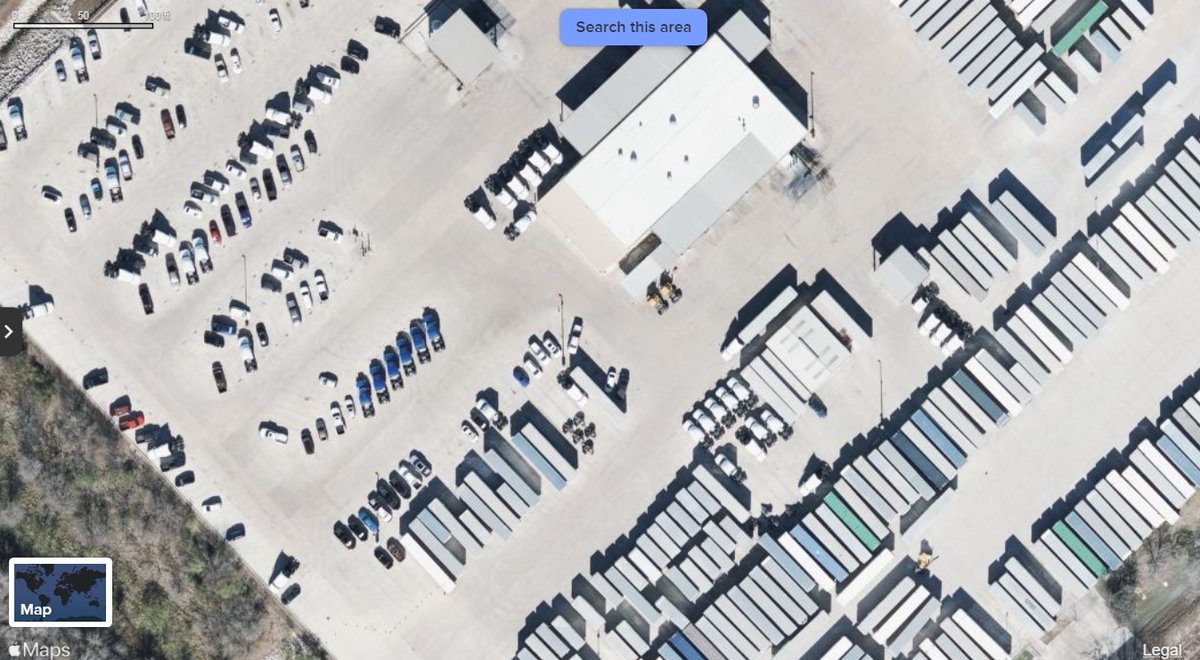 The previous tweet showed the center's hundred of trailer loading bays and this photo shows a pair of forklifts next to a small building as the same facility.