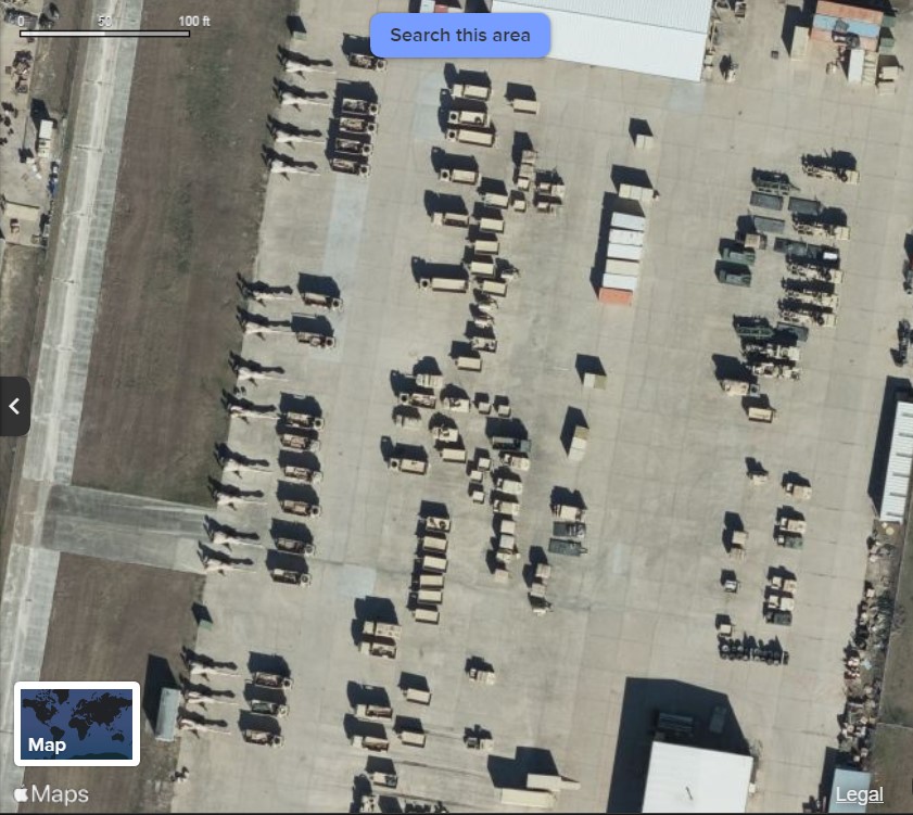 This is a US Army M777 Battalion motor pool at Fort Hood, Texas from Google maps (left).