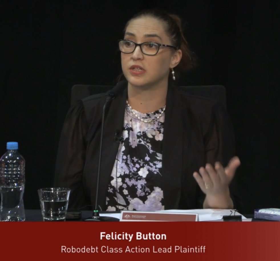 #RoboDebtRC Felicity Button gave a story of having received a debt which was increased on review not once but twice. 😳 Raising a young family she considered giving it all up. In the end took part in the class action & hasn’t stopped since.