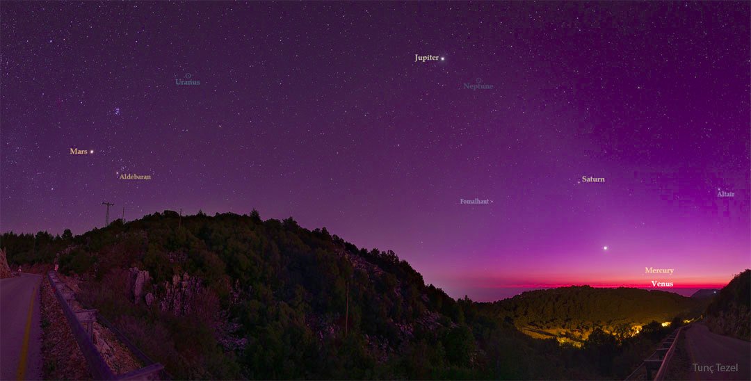 Tout d'abord, il est très très facile d'observer des planètes. Ce soir, au coucher du Soleil, vers l'ouest, vous verrez Jupiter et Vénus qui brillent de 1000 feux au dessus de l'horizon.