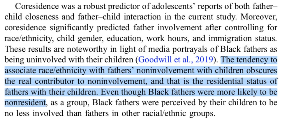 "People associate father noninvolvement with race, but in fact the real contributor to noninvolvement is residential status. Oh and by the way black fathers are far less likely to live with their children *adds a claim that is belied by his own data*"