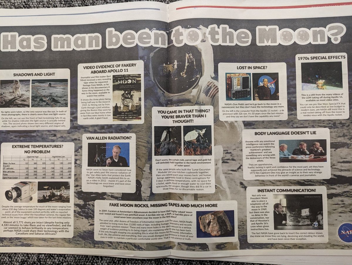 I can't believe I'm only halfway through this darned thing. But check it out, here's a centre spread on how the moon landings were faked. Might hang this one up, it's awesome.