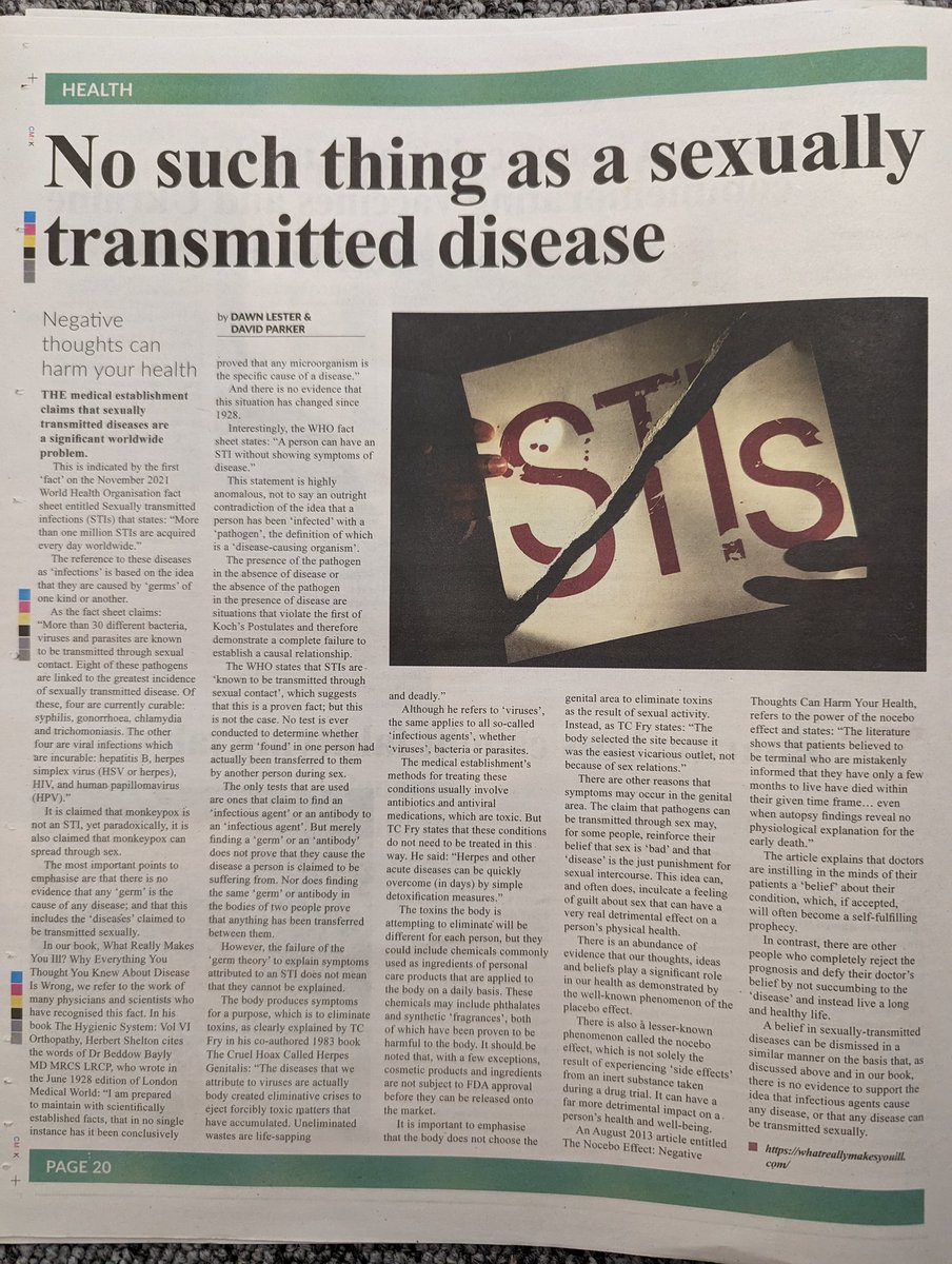 I can't sugar coat it: this article claims sexually transmitted diseases are fake. In fact, it goes further than that, claiming "there is no evidence that any germ is the cause of any disease". Turns out the two people who wrote the article are trying to sell a book.