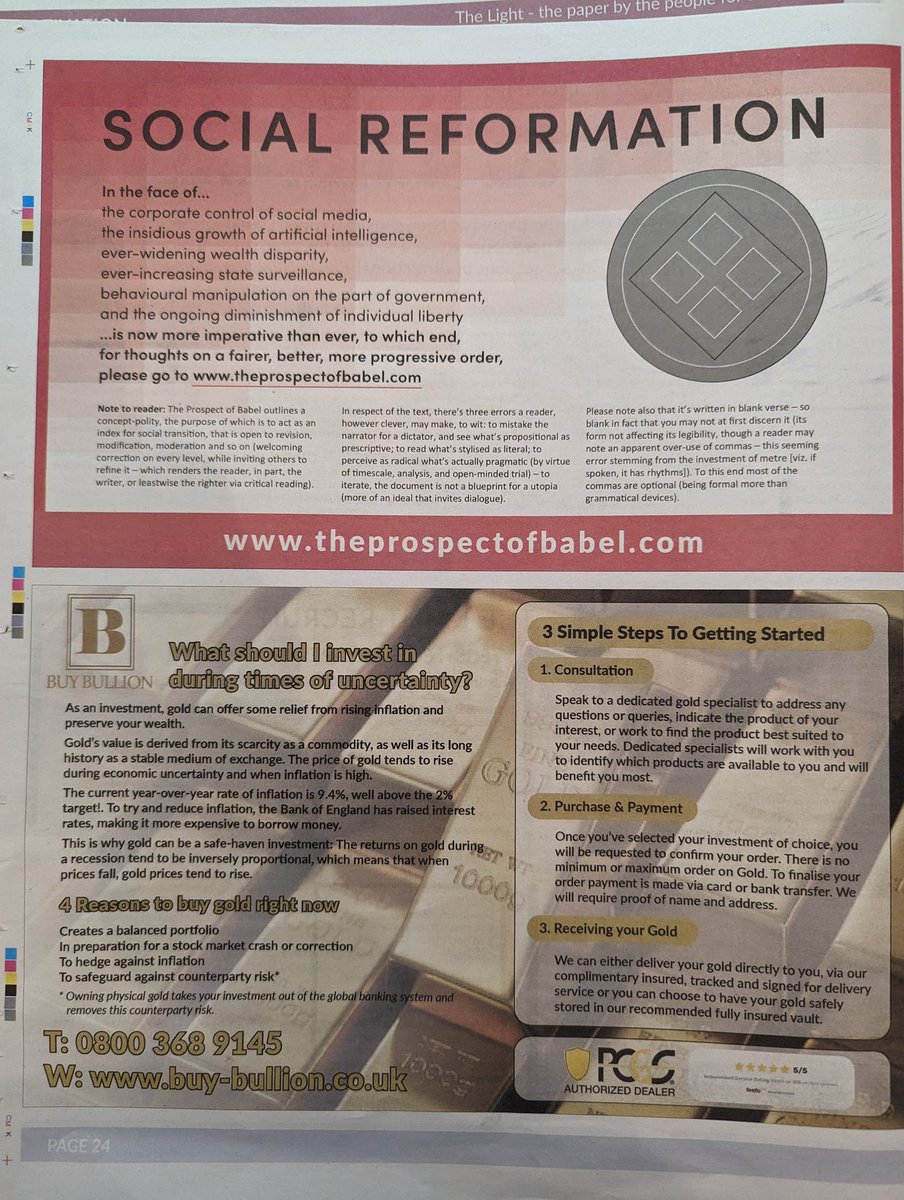 At the anti-LTN rally in Oxford, I picked up a copy of British conspiracy newspaper The Light, which brings together many of the beliefs to which many vulnerable people now subscribe. I read it so you don't have to. A thread! 🧵