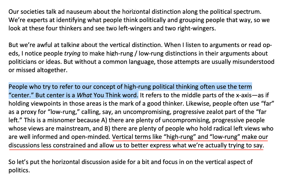 We should see political questions not as 1D (left-right, pro-anti), but at *least* 2D: