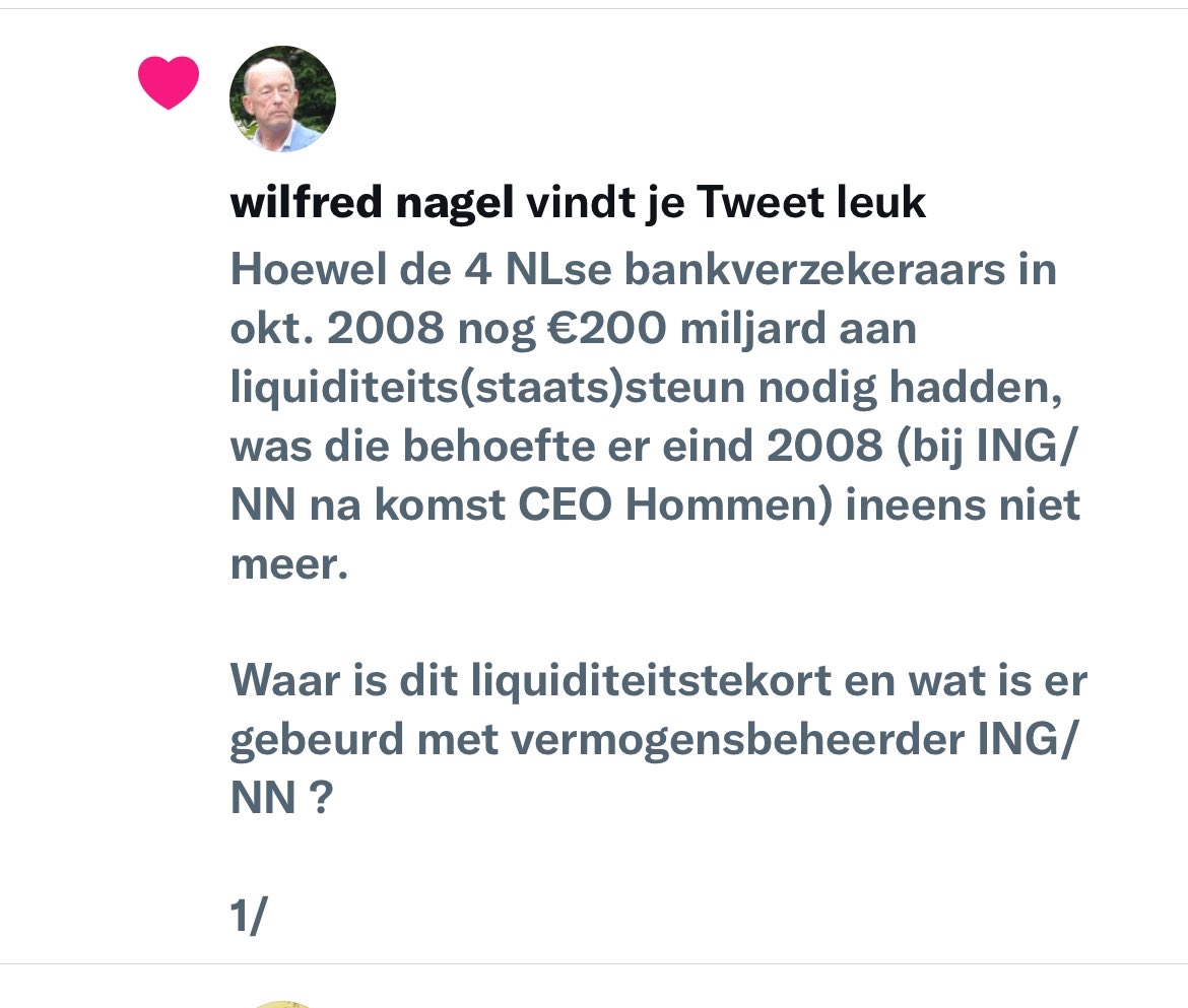 Verrassend dat voormalig Chief Risk Officer v ING/NN Wilfred Nagel deze tweet op 3 jan. heeft geliked. Nagel ging op zijn 61ste (2017: na de majeure balanscorrecties) met vervroegd pensioen en noemde toen de crisis “bepaald niet de grote ramp die sommigen er in willen zien”.