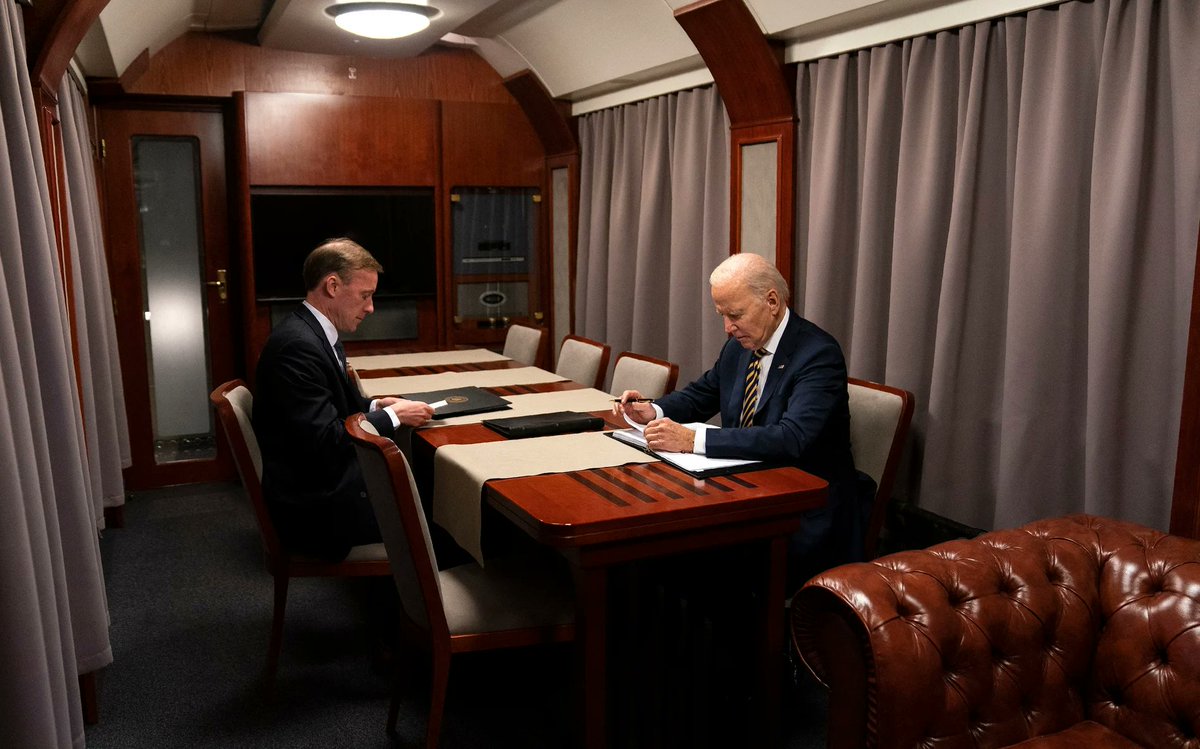 Wizyta w Polsce zaczęła się o 19:57 od przylotu do Rzeszowa, by już o 20:12 wyjechać do Przemyśla, skąd o 21:37 pociągiem udał się wraz z towarzyszącym sztabem do Kijowa. 3/x