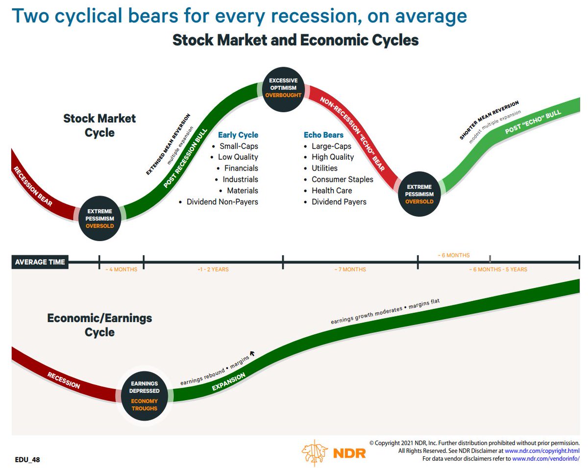 A non-recession bear in 2022 would fit with the typical cycle. For the past 60 years, the US has averaged 2 bear markets for every recession. The pattern is recession bear, post-recession bull, non-recession (or echo bear), and post-echo bull. 5/9