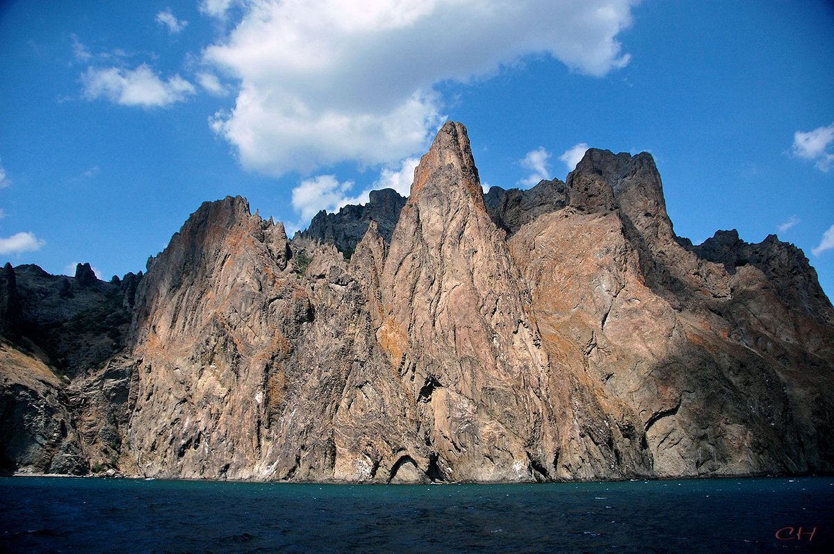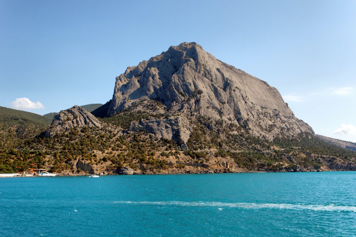 Згаслий вулкан Кара-Даг і скеля Шейтан-Капу/Алтин-Капи, Кефенський (зараз Феодосійський) район.