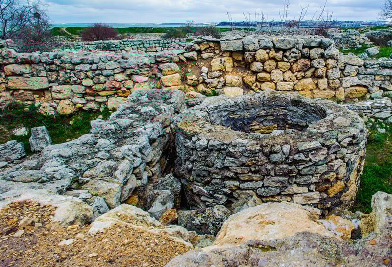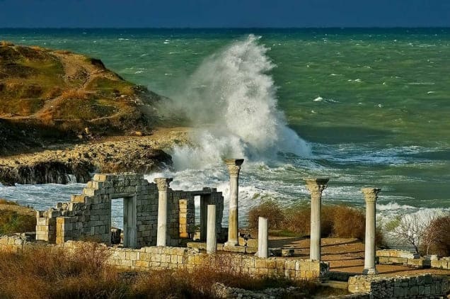 Руїни античного та середньовічного міста Херсонес, територія сучасного міста Ак'яр/Севастополь.