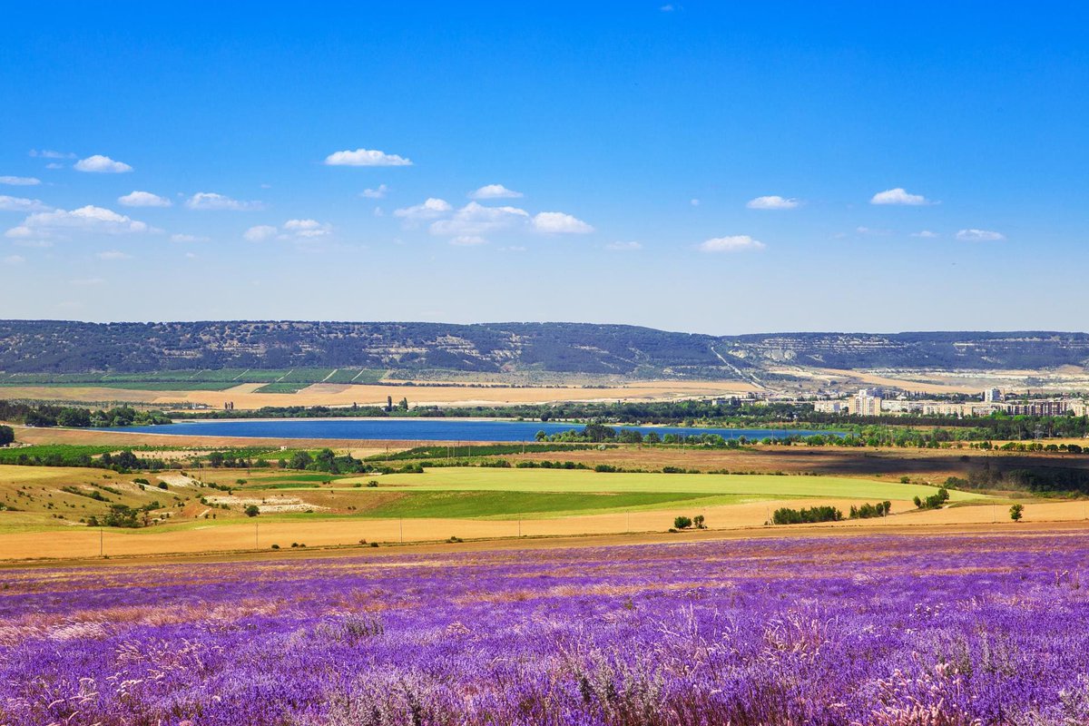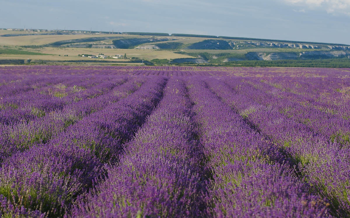 Лавандові поля, на території всього передгір'я Кримських гір.