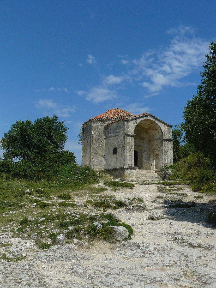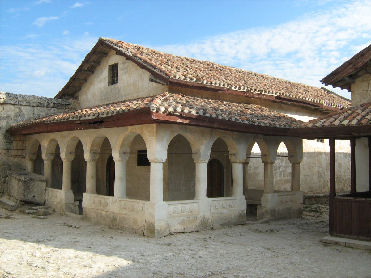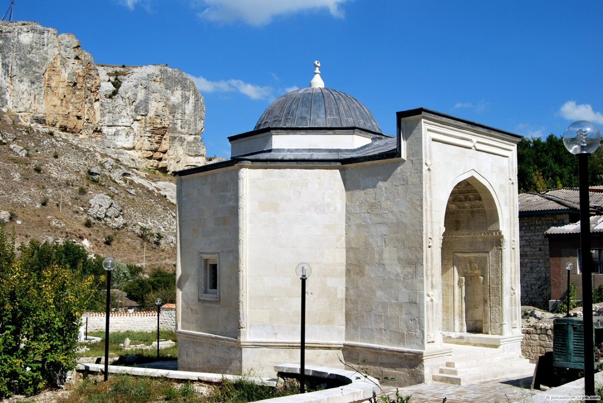 Дюрбе (мавзолей) Джаніке Ханим XV століття, караїмська кенаса XIV століття, середньовічне місто-фортеця Кирк-Ор, пізніше Чуфут-Кале, біля міста Бахчисарай.