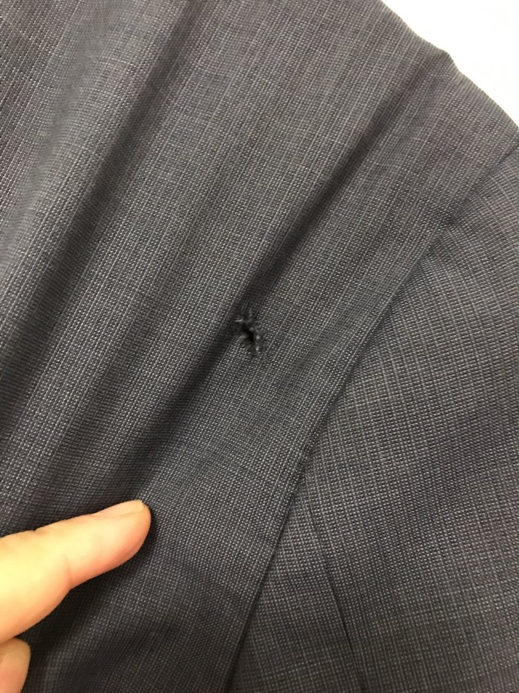 Have a hole? French American Reweaving Company does more than patch things up—they fill the hole with matching material, so the repair is invisible. Works on knits and wovens (e.g. sweaters, suits, pants).