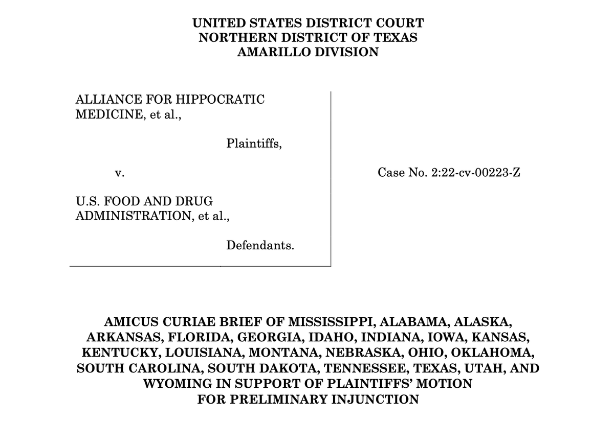 In addition to Mississippi AG Lynn Fitch, here are the other 21 signatories to the brief seeking an end to the FDA's mifepristone approval: lawdork.com/p/republican-a…