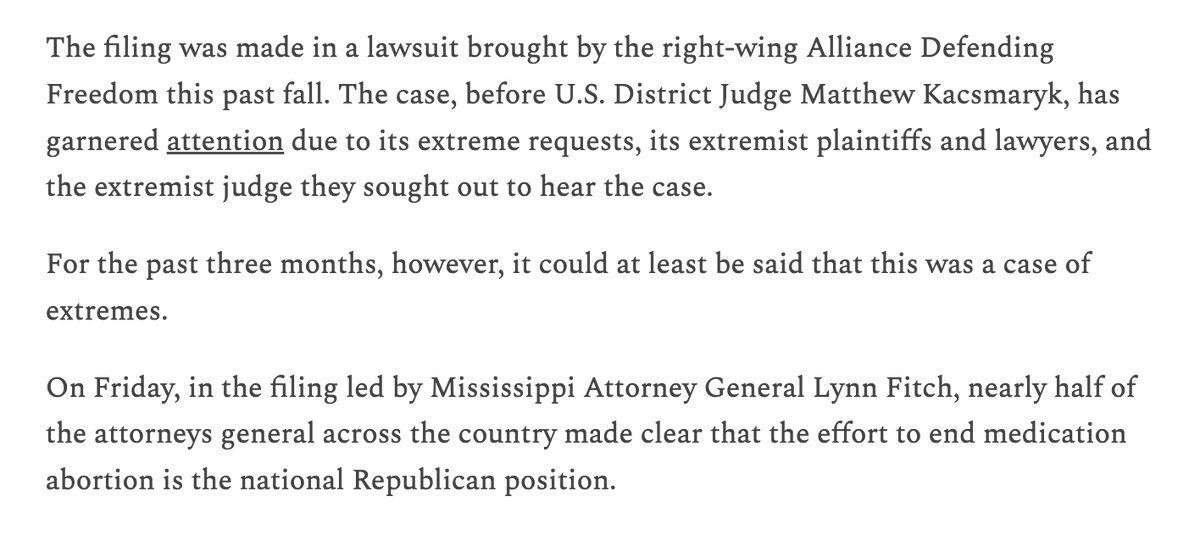 "On Friday ... nearly half of the attorneys general across the country made clear that the effort to end medication abortion is the national Republican position." lawdork.com/p/republican-a…