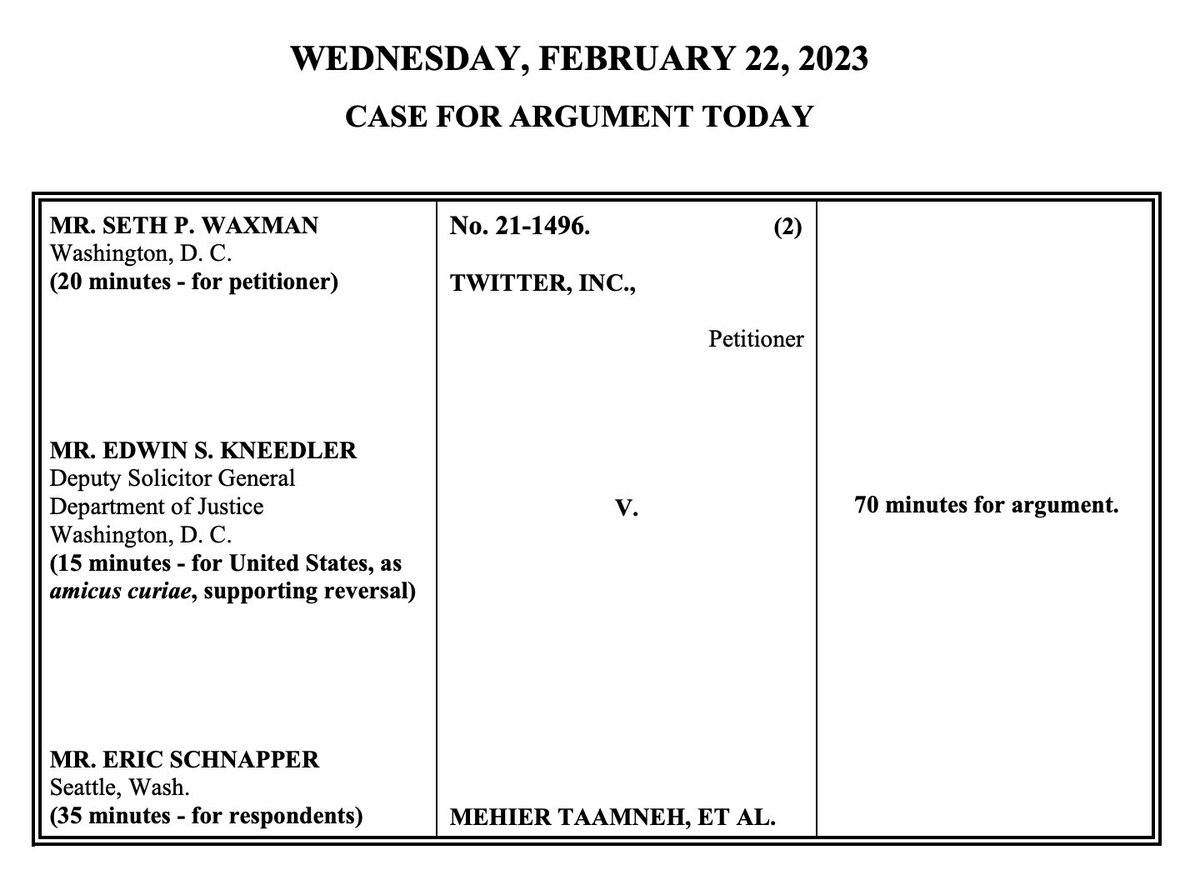 Now, over to Twitter v. Taamneh oral arguments, the aiding and abetting case referenced yesterday, already in progress. supremecourt.gov/oral_arguments…