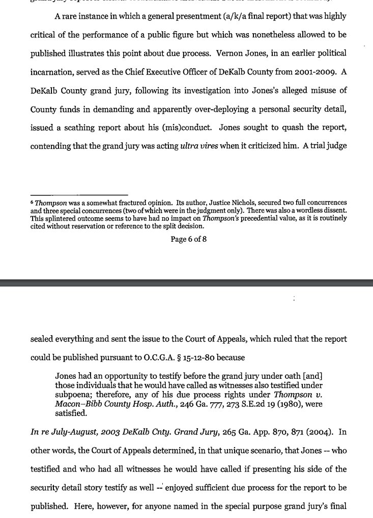 And as expected after reviewing the Vernon Jones report, the portions we got tell us more about the kinds of evidence received. But with one exception, we know zip about the special grand jury's recommended charges and against whom. 3/