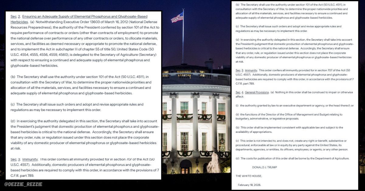 3🧵The DAY AFTER Bayer submitted the settlement Trump signs EO"Promoting the National Defense by Ensuring an Adequate Supply of Elemental Phosphorus and Glyphosate-Based Herbicides."