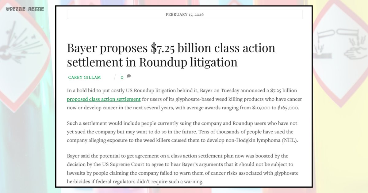 1/9🧵On Feb 17th, Bayer announced a proposed nationwide class settlement of $7.25+billion for Roundup/glyphosate non‑Hodgkin lymphoma claims.