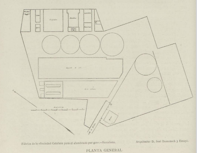 La Sociedad Catalana para el Alumbrado por Gas fue fundada en 1841 para dotar a Barcelona de alumbrado eléctrico. Sus instalaciones estaban en la Barceloneta. Entre 1893 y 1896 Josep Domènech i Estapà realizó el edificio de oficinas en Av. Portal de l'Àngel, 20