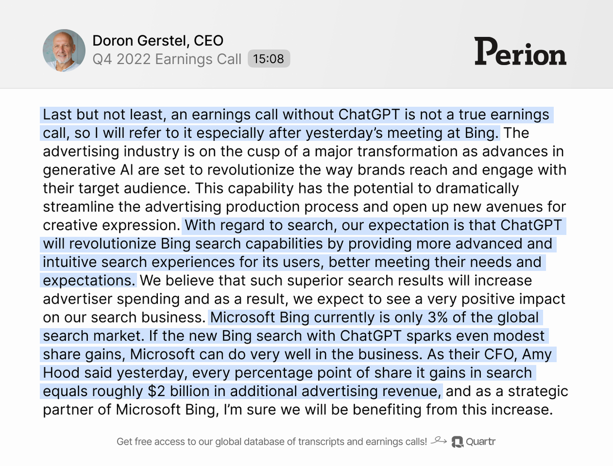 1. $PERI is very bullish on $MSFT Bing: