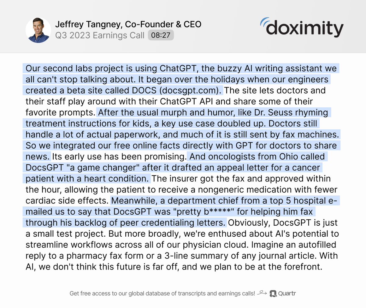 2. $DOCS is powering ChatGPT in its recently launched chatbot for doctors: