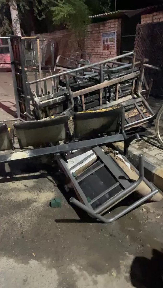 These ars burnt out chairs of Gurudwara Singh Sabha, Model Town, Jallandhar Punjab. These chairs were taken out of Gurudwara & then burnt by goondas of