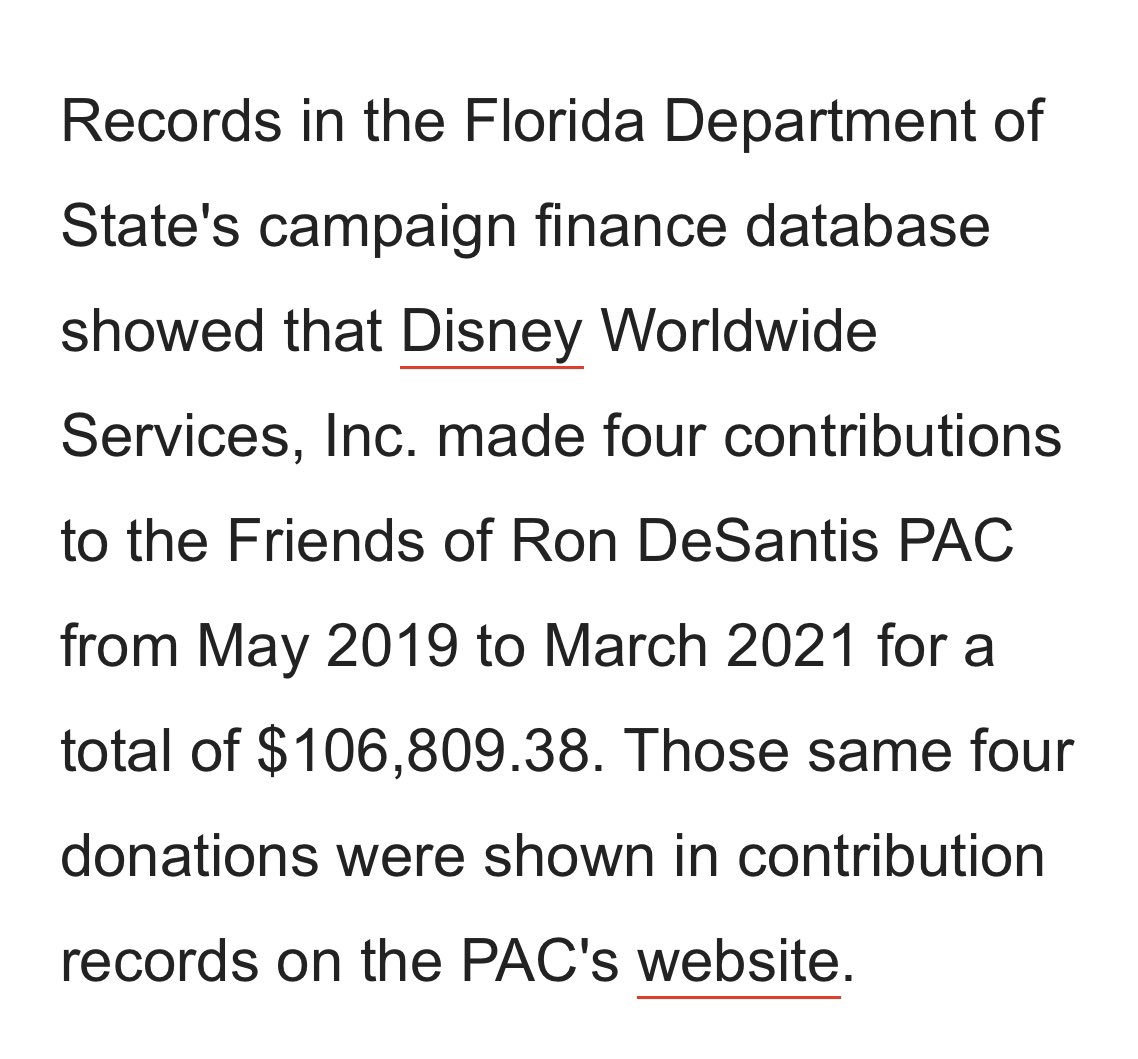 Here’s a thread about Meatball Ron’s long-time collusion with Disney. His big tech bill is a perfect example. It’s known for being toothless. In addition, it also contained an exemption for Disney, because he needs those tax revenues from them.