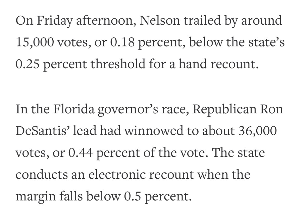DeSantis led by nearly 100k votes on election night, and it seemed almost impossible for Gillum to come back. Gillum himself conceded that night, but AP didn’t call it.