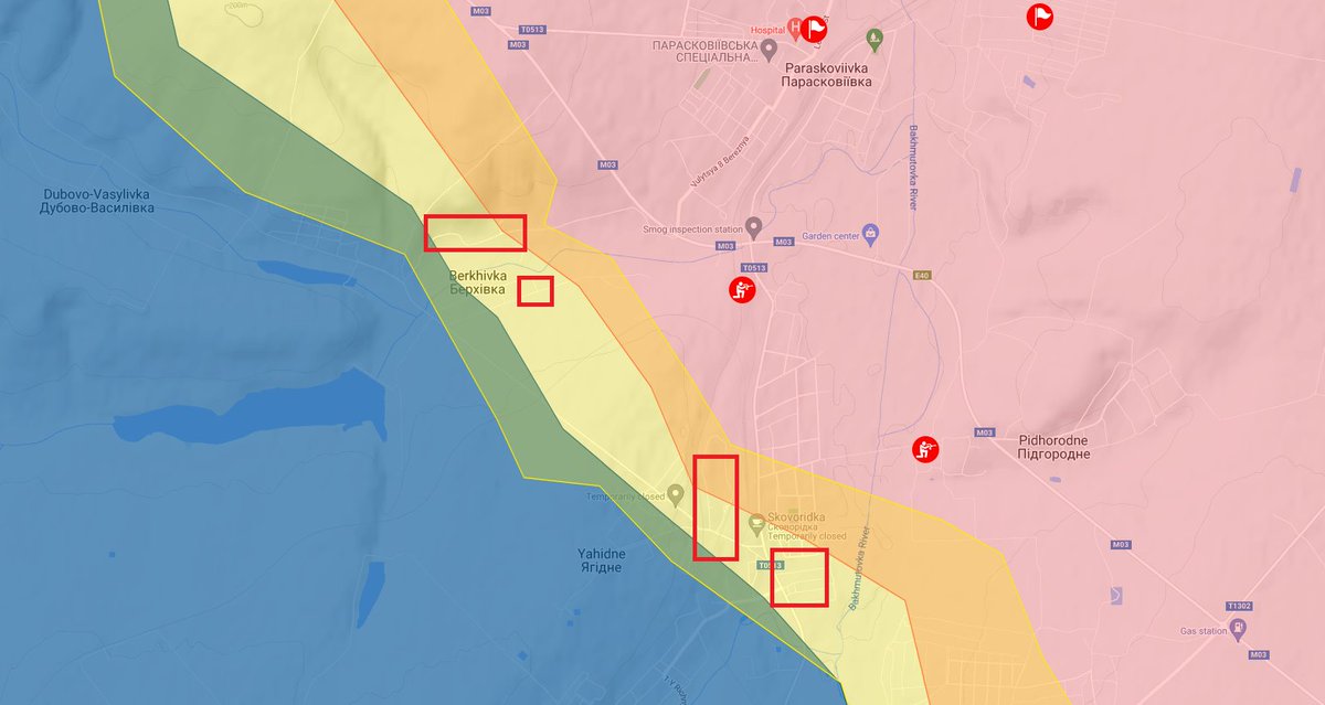 North of Bakhmut, the situation is not good. Despite a 🇺🇦 counterattack yesterday, 🇷🇺 troops managed to take northern Berkhivka. There is fighting in Yahidne. In the south and east, the situation is fairly stable. Aviidvka/Marinka/Pobjeda is under control despite Russian efforts.