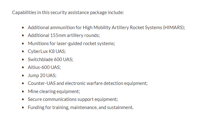 The US Department of Defense (DoD) announced a new security assistance package to Ukraine which totals $2 billion. The aid is provided under USAI, which means the equipment will be procured via long term contracts and not taken from current stocks.