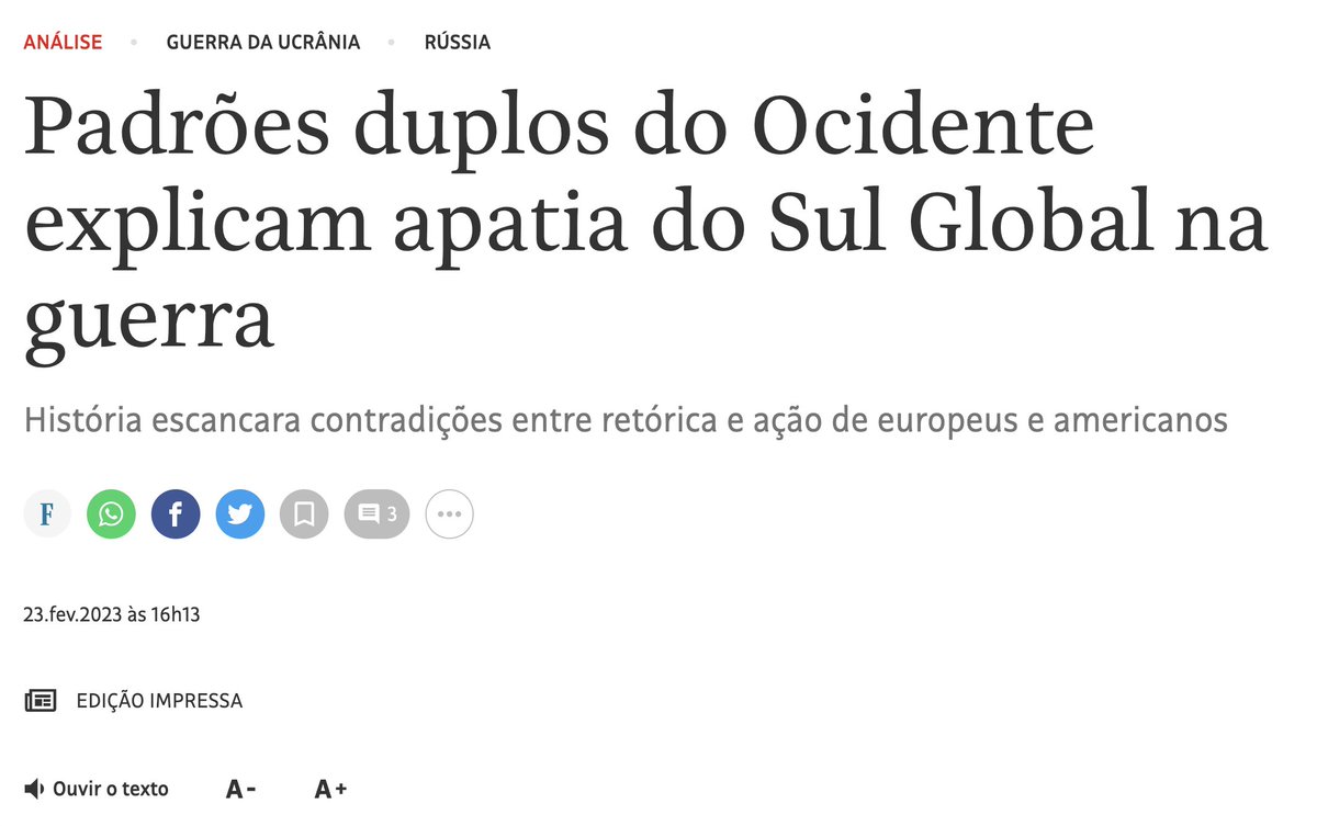 We'll also review this op-ed published by Brazil's largest paper, @Folha, on how Biden can't rally support for the US role in Ukraine because most of the world, knowing US history and the role of the CIA, disbelieves propaganda about its love of democracy and human rights.