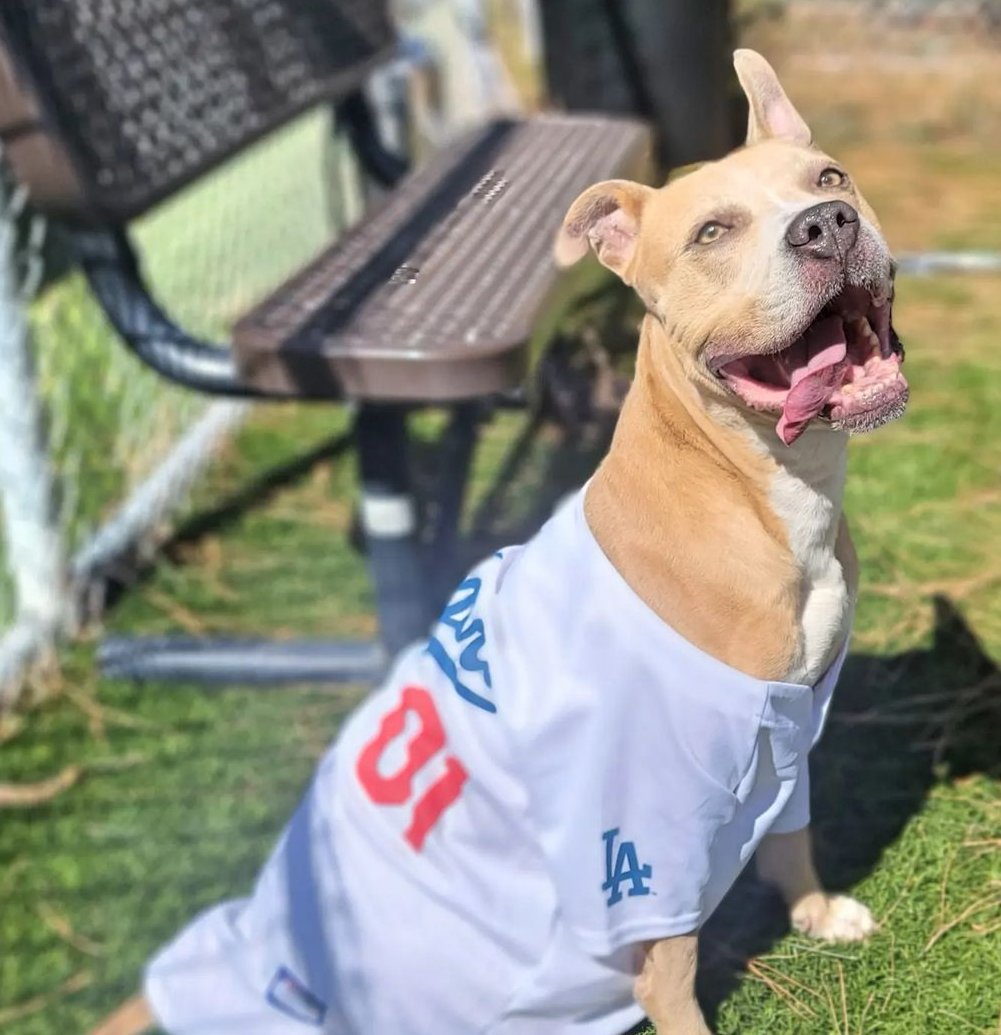Volunteer Desi had EMILIO out in the Downey CA yard today. Just look at how happy this 1 yo is that someone is paying attention to him ππ₯ He is in desperate need of a #SoCal home to go to Mon 2-27 π