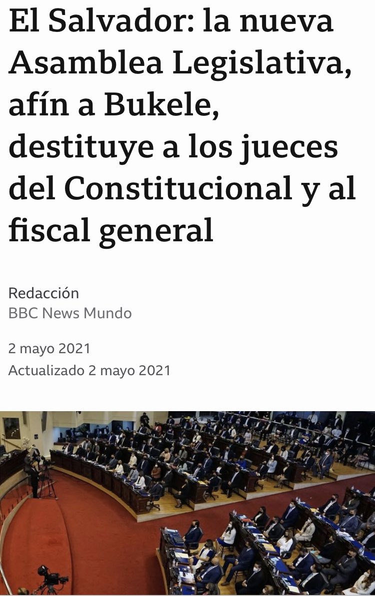 3. ¿Qué hizo Bukele? En Mayo del 2021 usa la mayoría parlamentaria para destituir ilegalmente la los magistrados de la Sala Constitucional y al Fiscal General que estaban investigando estos y otros hechos de corrupción. Un hecho sin precendentes. 👇🏾