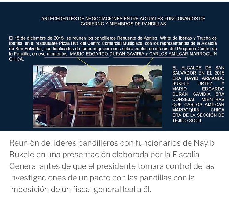 2. Desde el 2019 Bukele sostuvo diferentes negociaciones clandestinas con las tres principales pandillas del país MS 13, B 18 sureños y B 18 revolucionarios.