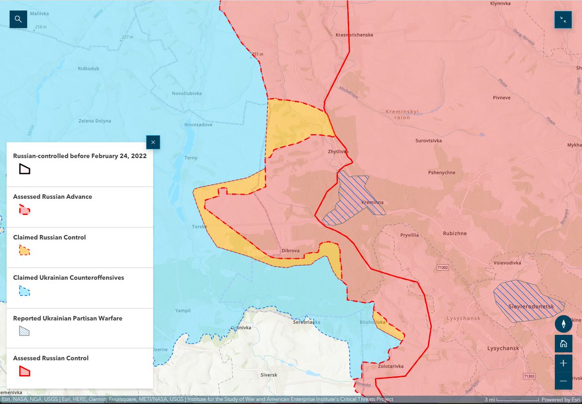 6/ Haidai claimed that Russian forces suffered heavy losses in an assault near #Kreminna with 70 killed in action and about 70 wounded in the course of a three-company assault.
