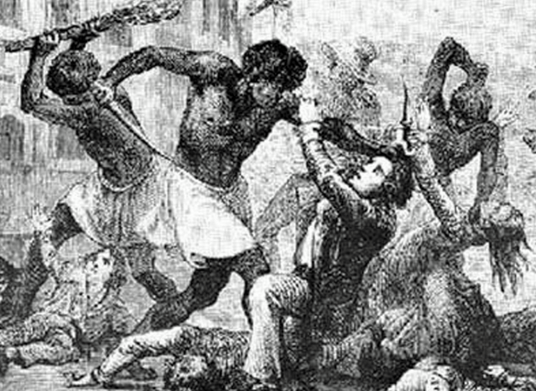 En misa de Acción de Gracias, Te Deum, dentro de la Iglesia fueron degollados casi todos los habitantes de Santo Domingo. Por la proporción de la población se considera genocidio. 5 ciudades fueron incenciadas