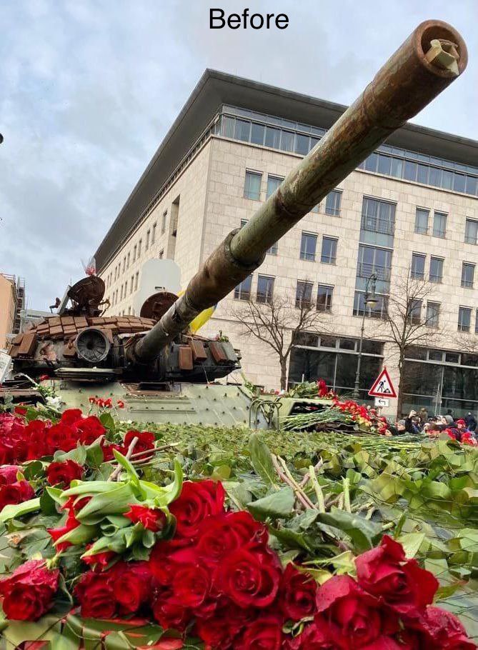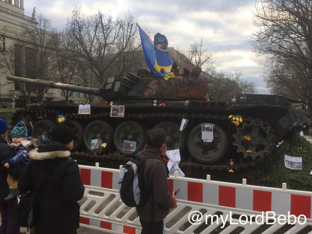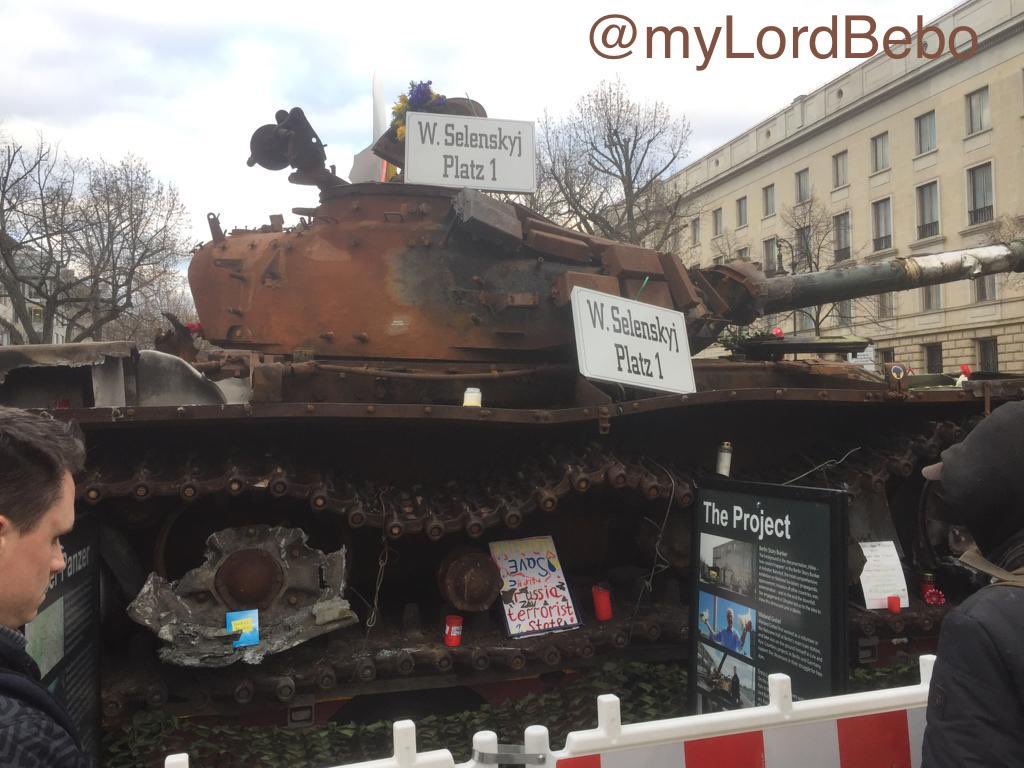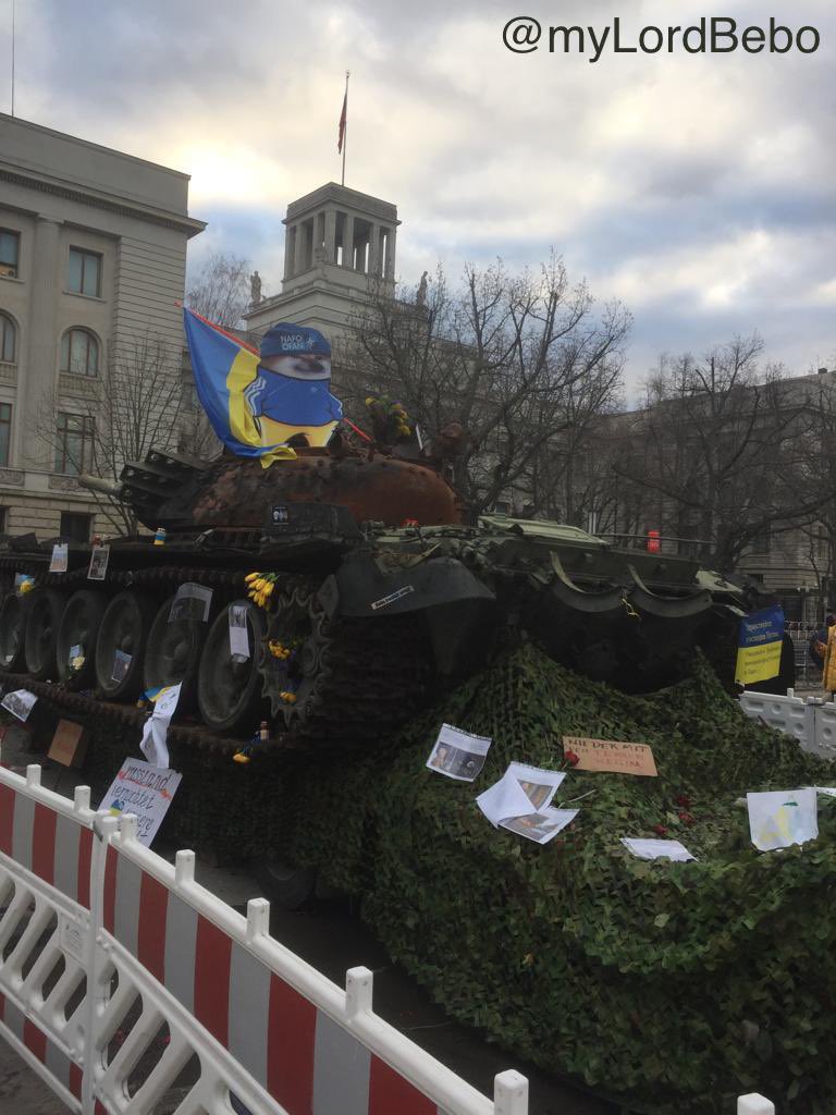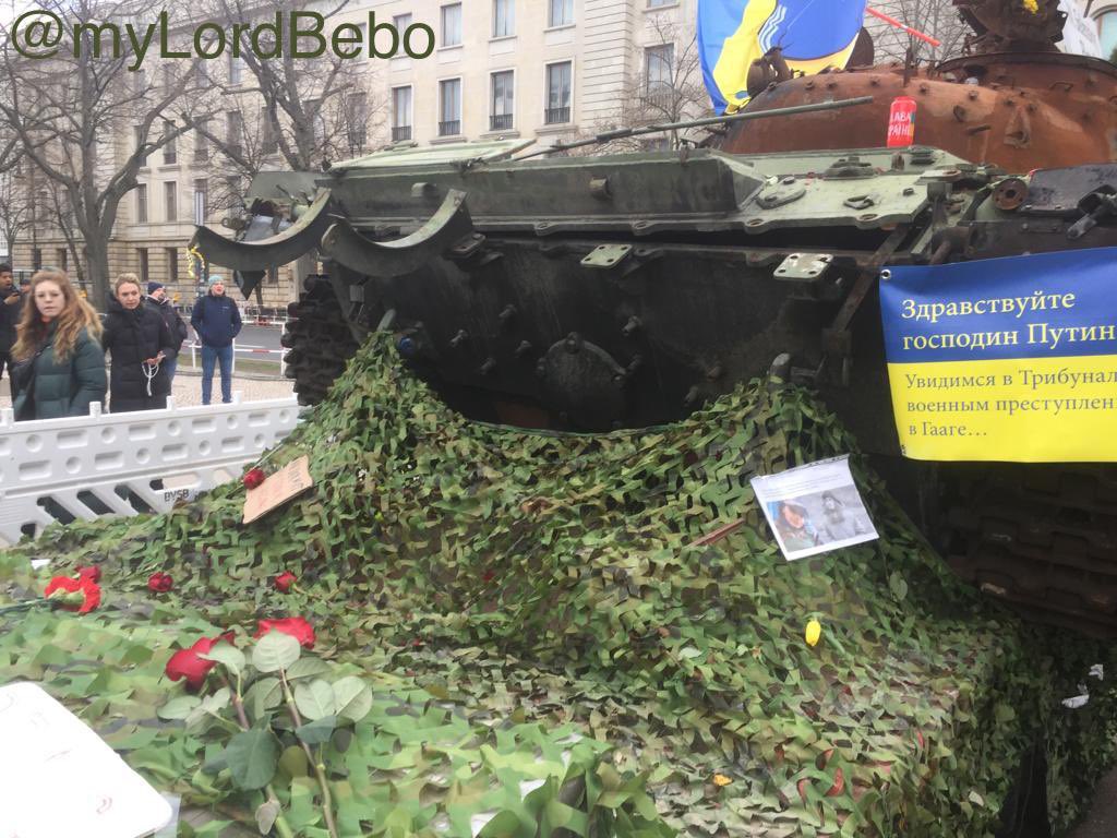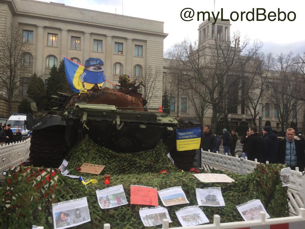 Consent manufacturing explained: 1) set up a tank in from of Russian embassy 2) expect people to condemn Russia 3) people start putting down flowers and asking for peace 4) close down tank, clean flowers and guard it