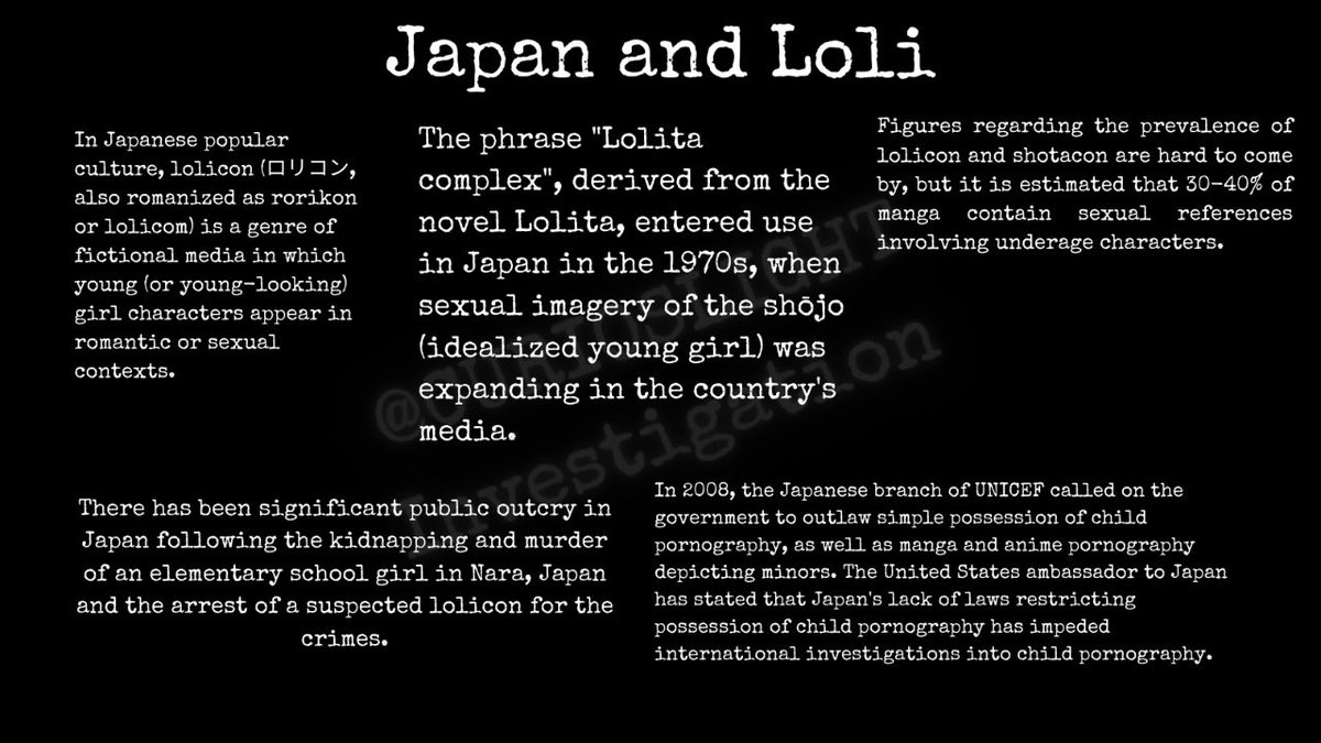 Japan was once called 'The international hub for the production and trafficking of child pornography'( U.S Department of State's human-rights report 2013 page 19 )