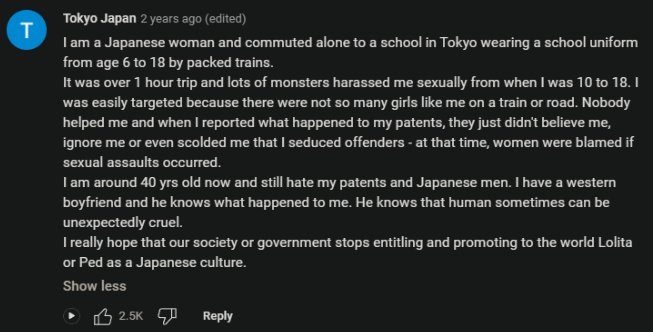 Lolicon is not only easily available but it's also a big part of Japanese mainstream media.