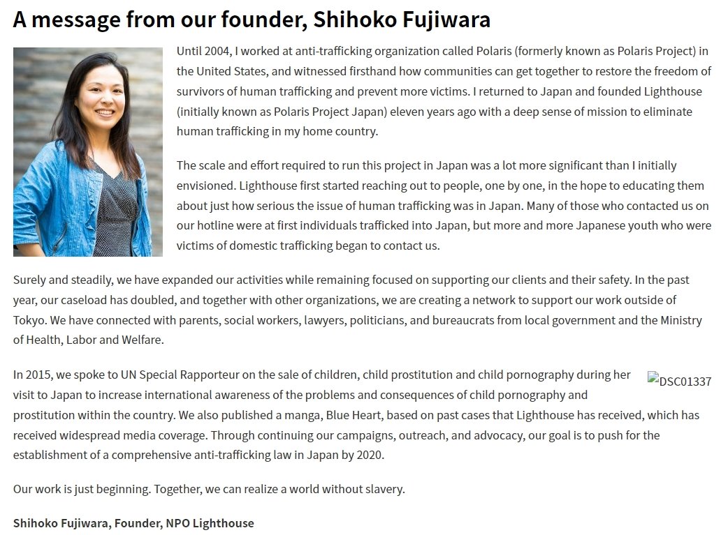 Shihoko Fujiwara, founder of lighthouse a center for human trafficking victims in Japan.