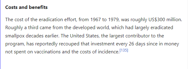 There's no political will to upset society & society has forgotten the wrath of SmallPox and how little it cost to eradicate "the pox". en.wikipedia.org/wiki/Smallpox#…
