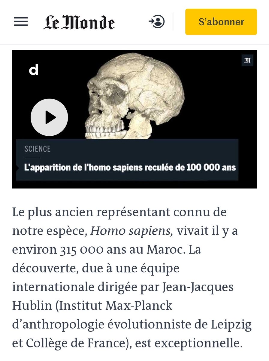 - Le plus ancien représentant de notre espèce (Djebel Irhoud, Maroc).