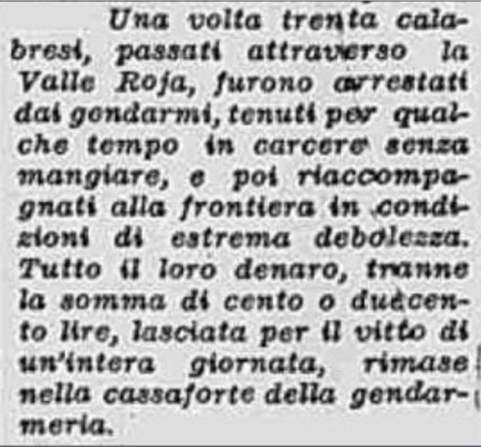 Furono così tanti i clandestini italiani ad essere uccisi dalla montagna che a Giaglione il sindaco arrivò a chiedere aiuto al prefetto di Torino “non avendo più risorse per dar sepoltura ai clandestini italiani che morivano nell’impresa disperata di valicare le Alpi”.