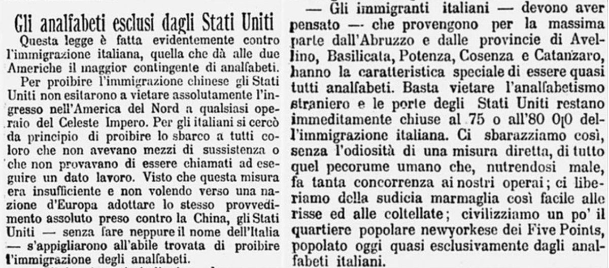 31/01/1897 - Fuori gli analfabeti italiani dagli Stati Uniti.