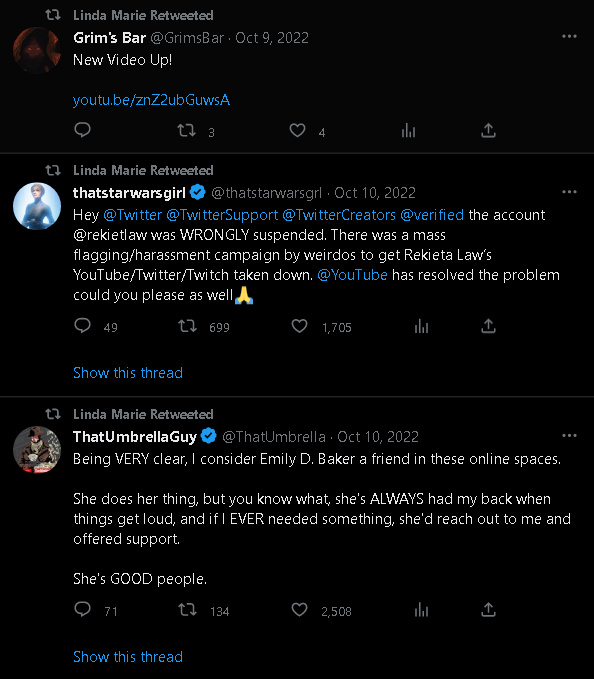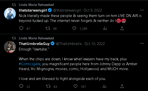 It even seems to like to retweet nothing but lawtube. We got @ThatUmbrella@MeganFoxWriter. Seems to fit the bill for some reason.
