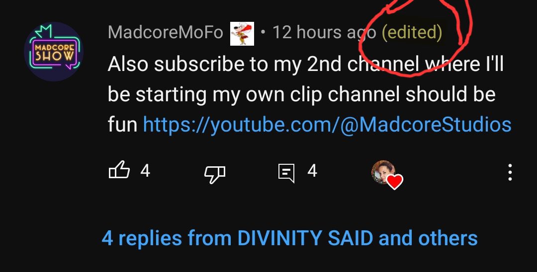 That pinecone @TheMadcoreShow said he was starting a clip channel for @divinity_said but edited the post when he figured out he could get nuked for helping her evade her strikes. Comical sub 100 iq moves from these clowns lol 😂