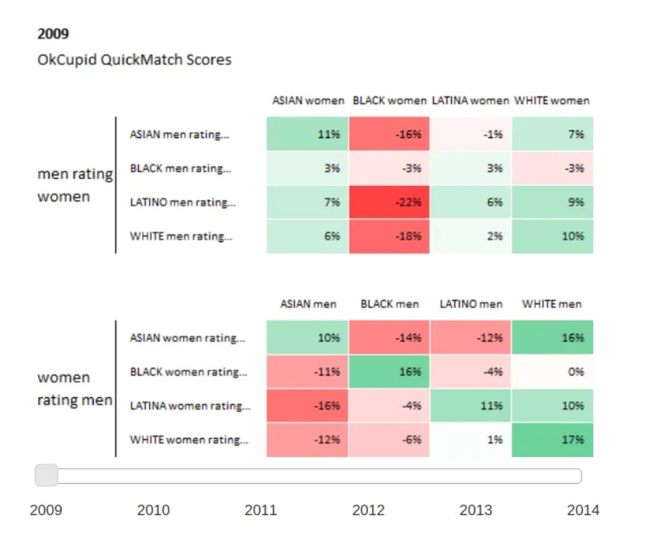 3/ The results below show how different ethnicities rate each other on attractiveness on OK Cupid.