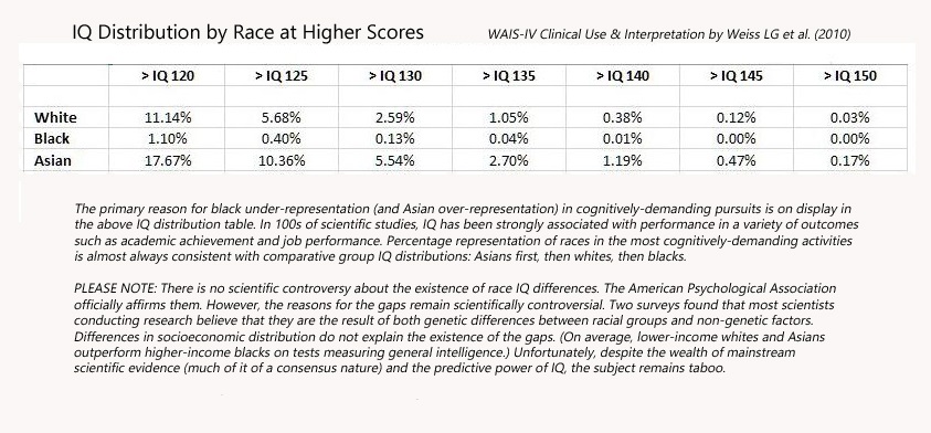 3/ Colorblindness hasn't worked because groups aren't equal in ability and talent across all traits and fields of endeavor. Group IQ distribution is the strongest predictor of group success in most meaningful outcomes, and these IQ distributions are hugely different.