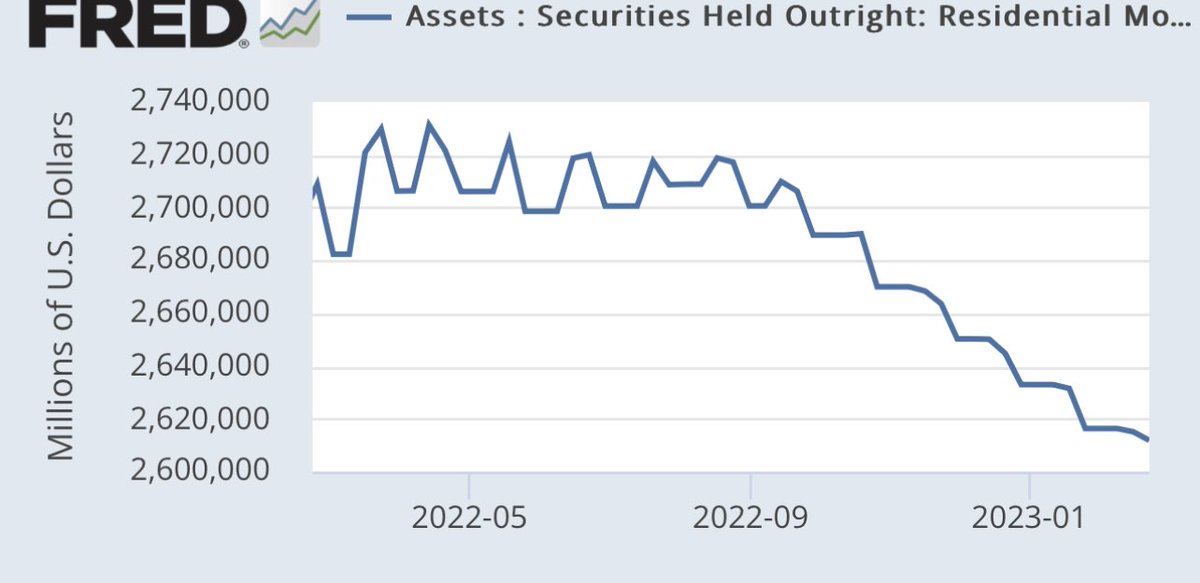As you can see, the largest holders were banks, second largest holder was the Fed itself, and the Fed was supposed to be *selling* this stuff. I think the Fed knew this was a problem, because actually they barely sold any MBS! 3/n